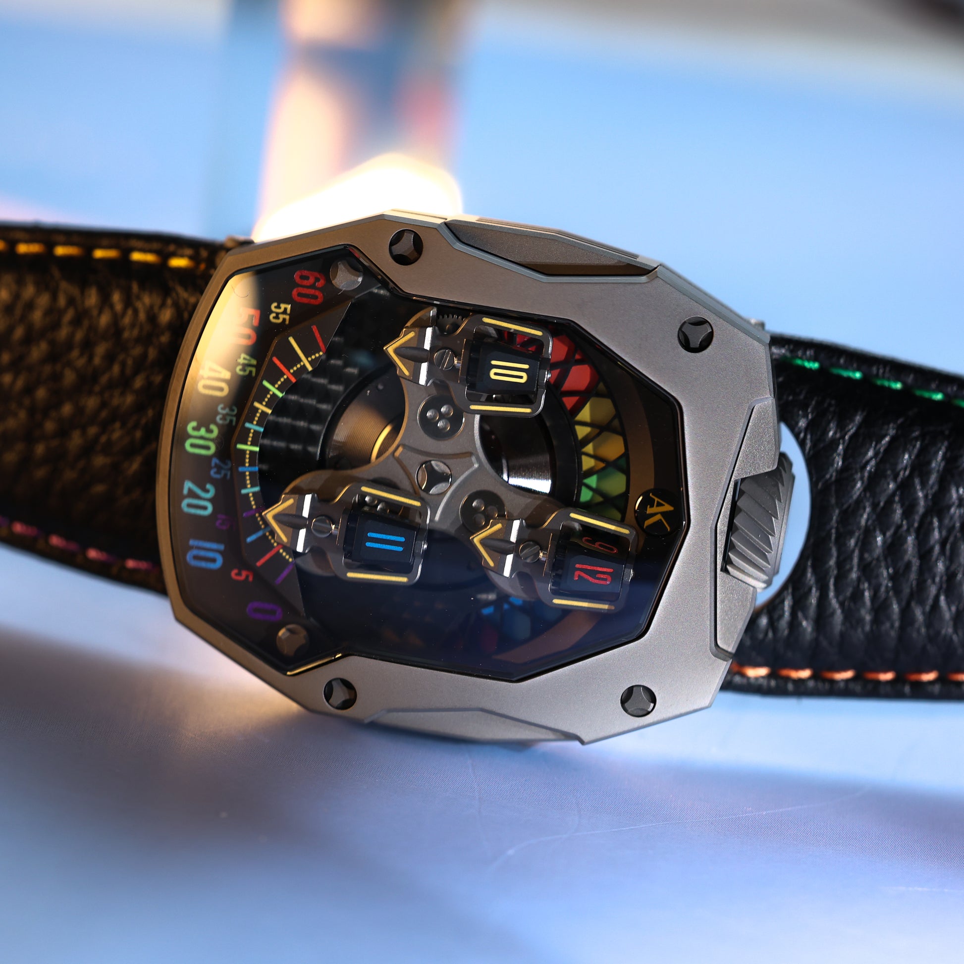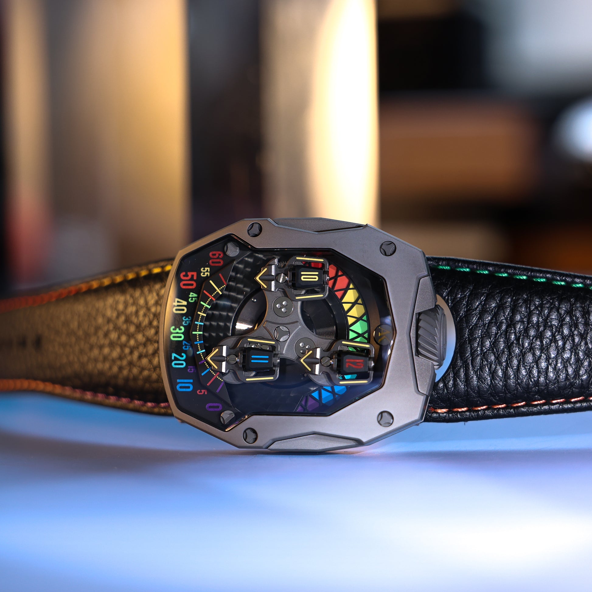At COSMOFLEET’s core is ATOWAK’s self-developed Vectorial-Orbit Wandering Hour (VOWH) system—a groundbreaking, non-traditional time display powered by high-precision planetary gears for unmatched stability and precision. Crafted from 44 parts using six premium materials (including titanium alloy, brass, and ruby) with tolerances as fine as 0.005mm, each component is hand-polished and fitted with mirror-polished screws, showcasing exquisite craftsmanship in every detail.