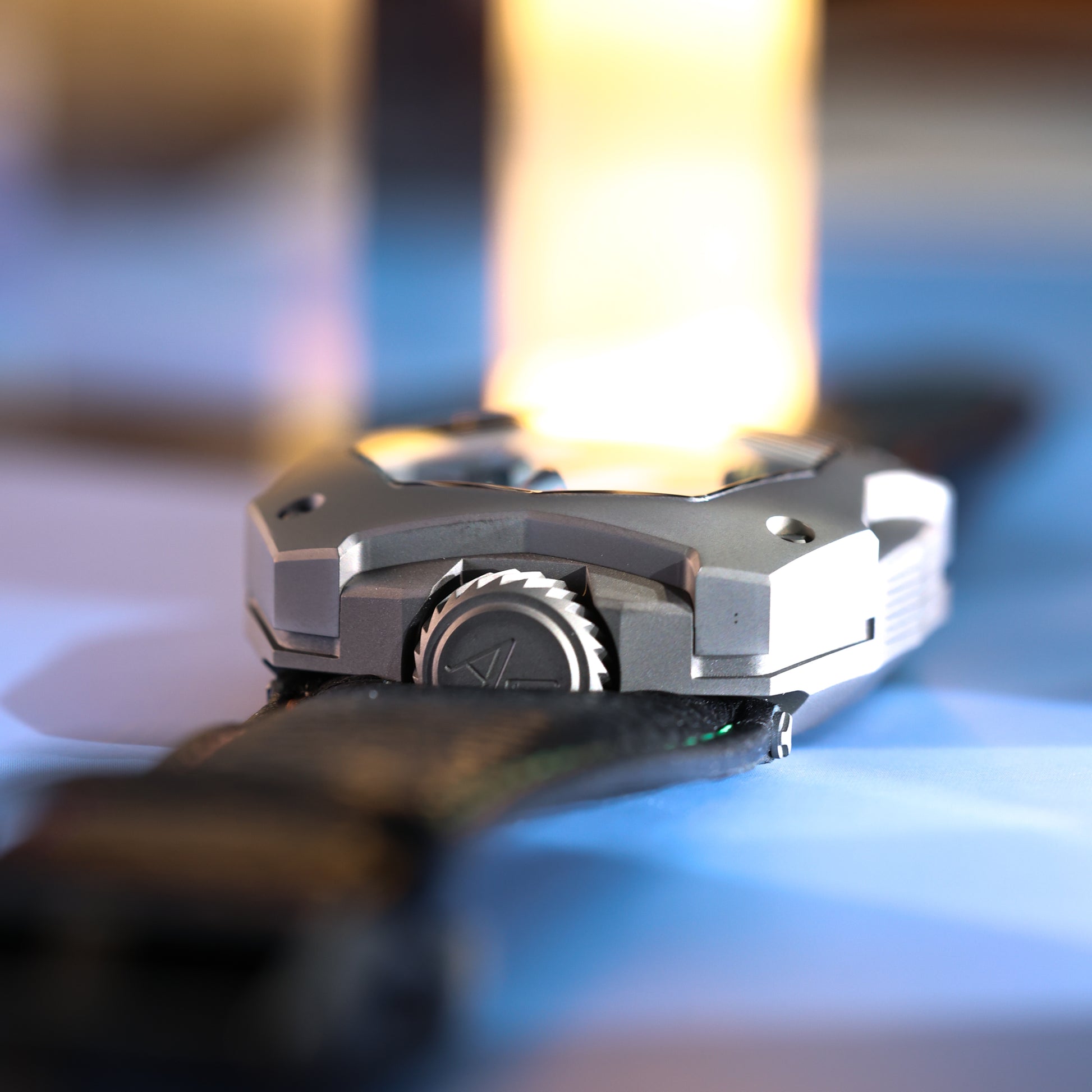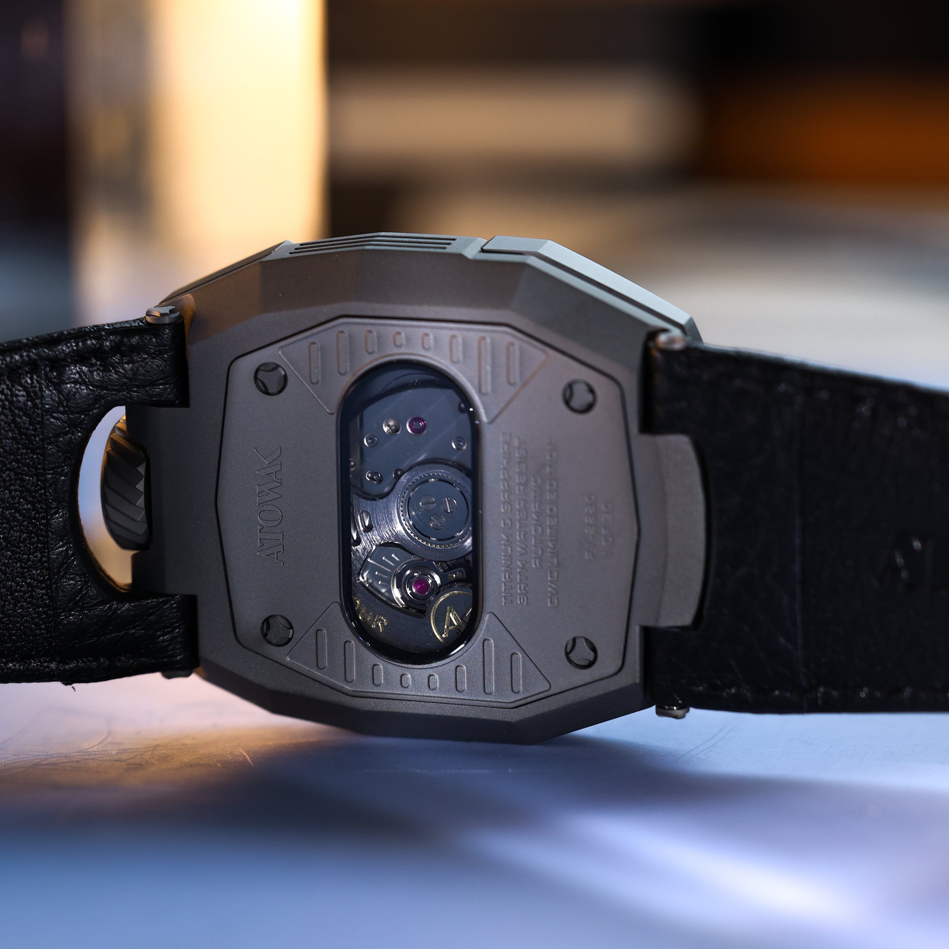 Featuring a custom cross-shaped double-curved crystal, the COSMOFLEET’s glass showcases ATOWAK’s commitment to precision and craftsmanship. Cut to a tolerance of 0.01mm, the glass is manually polished to integrate seamlessly with the case, reflecting the watch’s streamlined, unified design.